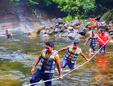 The Seven Waterfalls located near our campsite, set in motion from the west slope of the Knuckles Range surrounded by the Knuckles Forest Reserve, contribute to creating the famous Maha Oya. Since there are no civil structures in the upper part of the waterfall, a tremendous amount of pure water supply has been recorded throughout the year. The route to Seven Waterfalls is one kilometer long from the campsite and runs alongside the carpeted road descending about 200 meters and about 15 minutes away. The scenery on both sides of the road relieves fatigue and exhaustion while traveling, and we highly recommend it for family outings. We, at Nature Camp are the only team to facilitate safe and stirring adventure activities and experiences within this amazing hideout area.