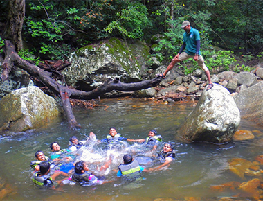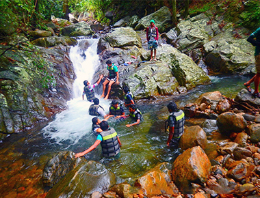 Instead of going along the carpeted road for 1km to reach the Seven Waterfalls, the adventure seekers can choose a trek along the river itself. The trek goes through a tough terrain that highlights the importance of facing challenges as a group to reach the destination. Guests can experience the endemic bird species of Sri Lanka in the Knuckles Conservation Zone along the way. Even though the trekking distance is approximately 1200 meters, the route along the river takes about an hour and a half to reach the Seven Waterfalls. Our tour guides work hard to ensure that these activities are carried out safely and under proper supervision.